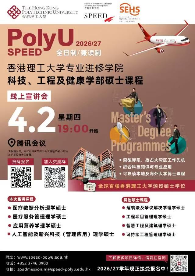 香港理工大学 SPEED 学院26Fall入学线上宣讲会重磅来袭!